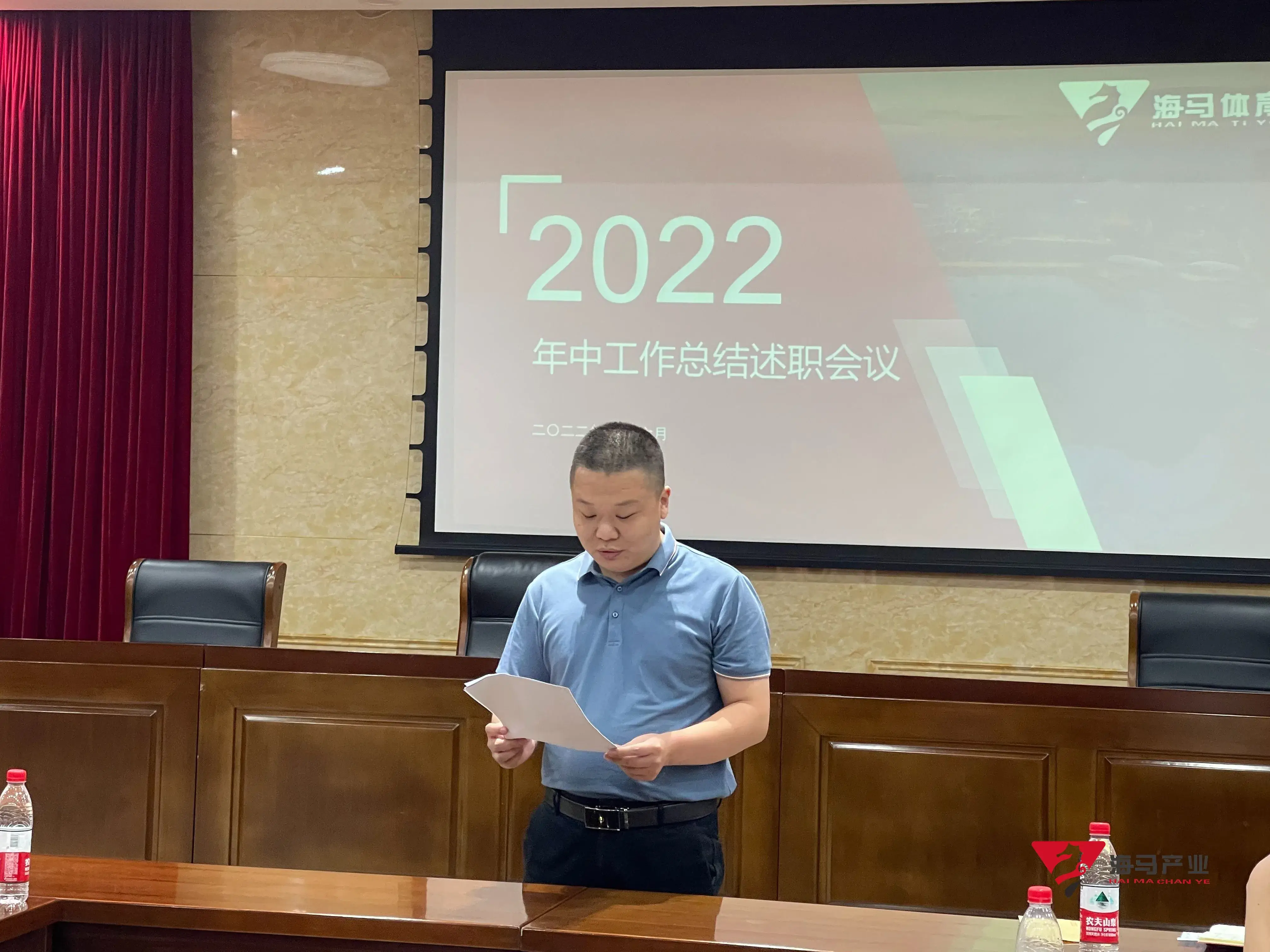 2022年6月29日下午,凯捷体育文化产业集团在山东省体育中心二楼会议室召开年中工作总结述职会议,会议对上半年工作成果进行了总结汇报,并就下半年重点工作进行部署。总经理王海民出席了本次会议。会议由综合管理部负责人王永健主持。